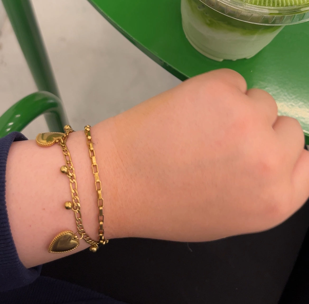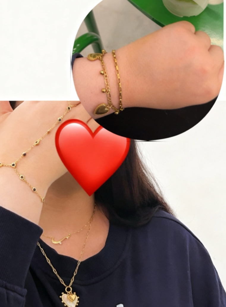 باكج قولد فرايدي الفاخر يجمع لك تنسيق ذهبي كامل وجاهز للّبس اليومي: هاند تشين ناعم، قلادتين بتفاصيل فخمة، وإسوارة قلوب راقية—كلهم ستايل واحد يناسب أي لوك، خامة ستانلس ستيل مطلي ذهب 18K ومقاوم للماء، متوفر بسعر٣٨ د.ك لفترة محدودة